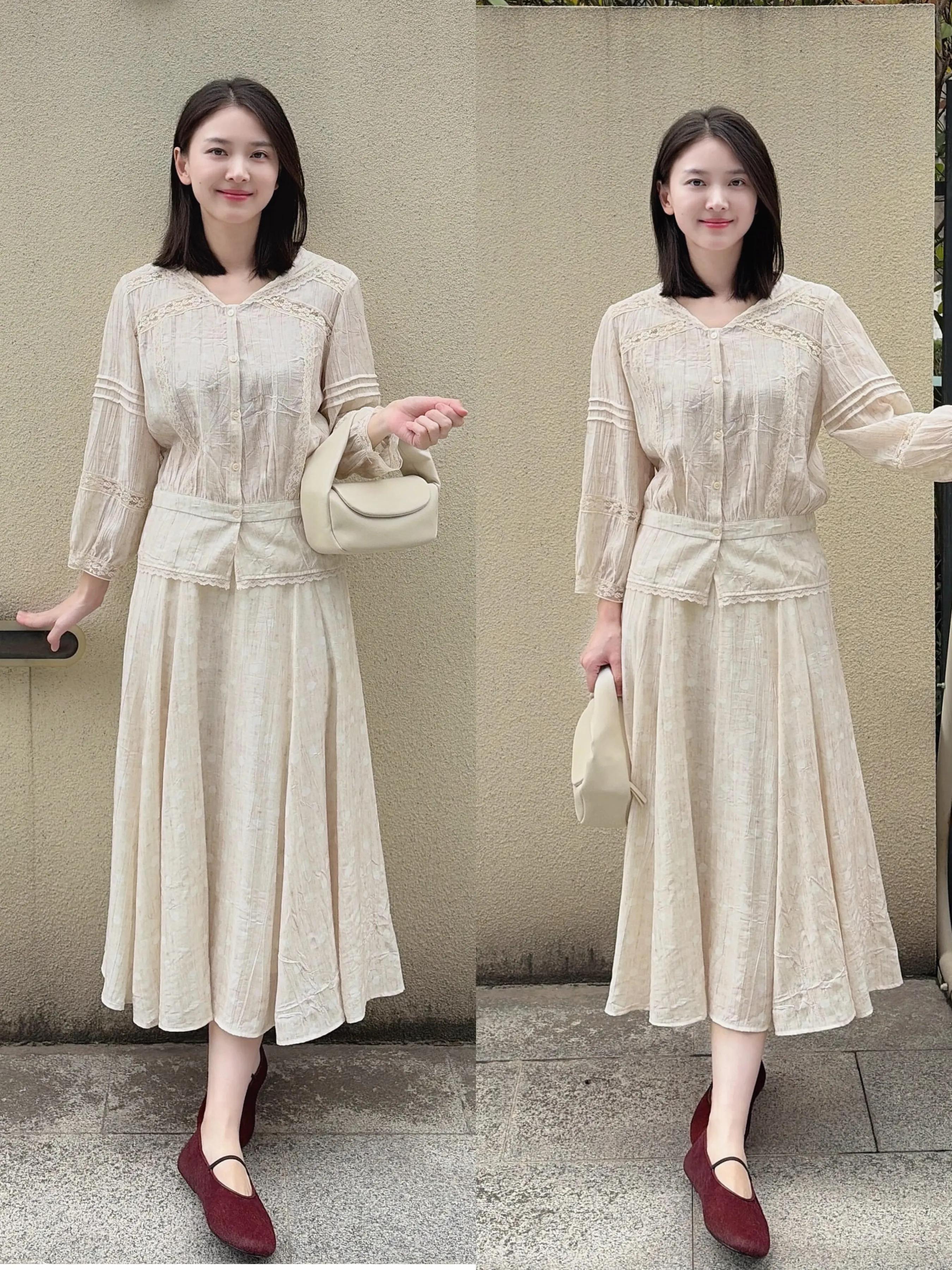 或者是选择一套新中式的衬衫裙装来穿,搭配上棕色的平底单鞋,简简单单反而不容易出错,很适合咱们普通大众女性借鉴。