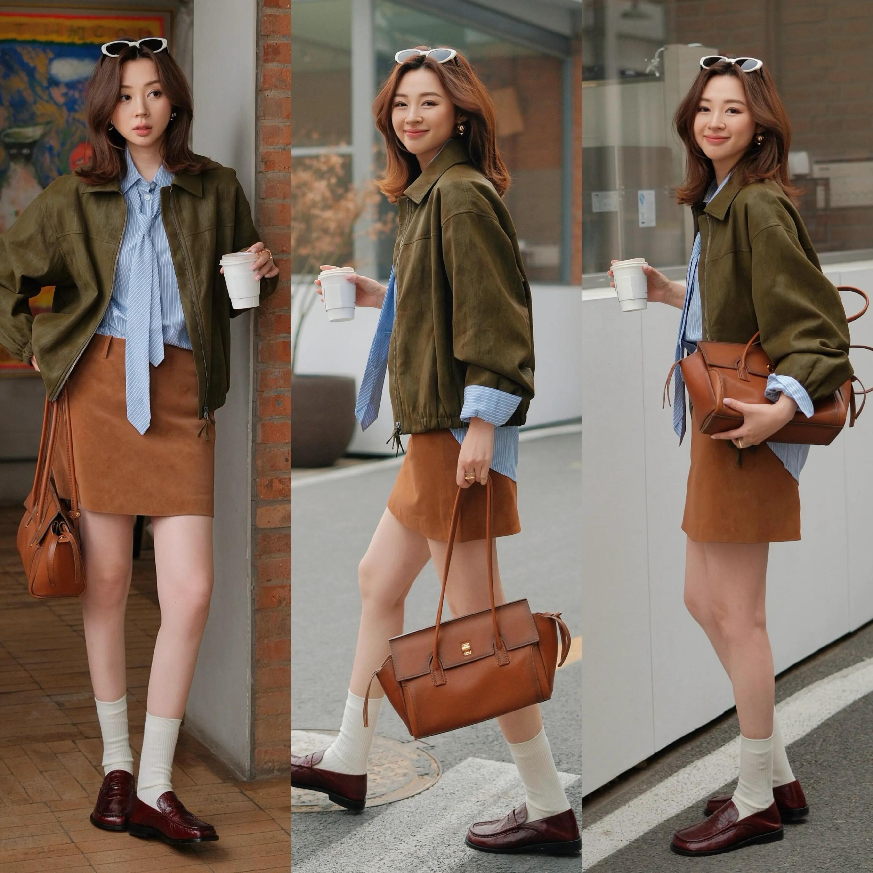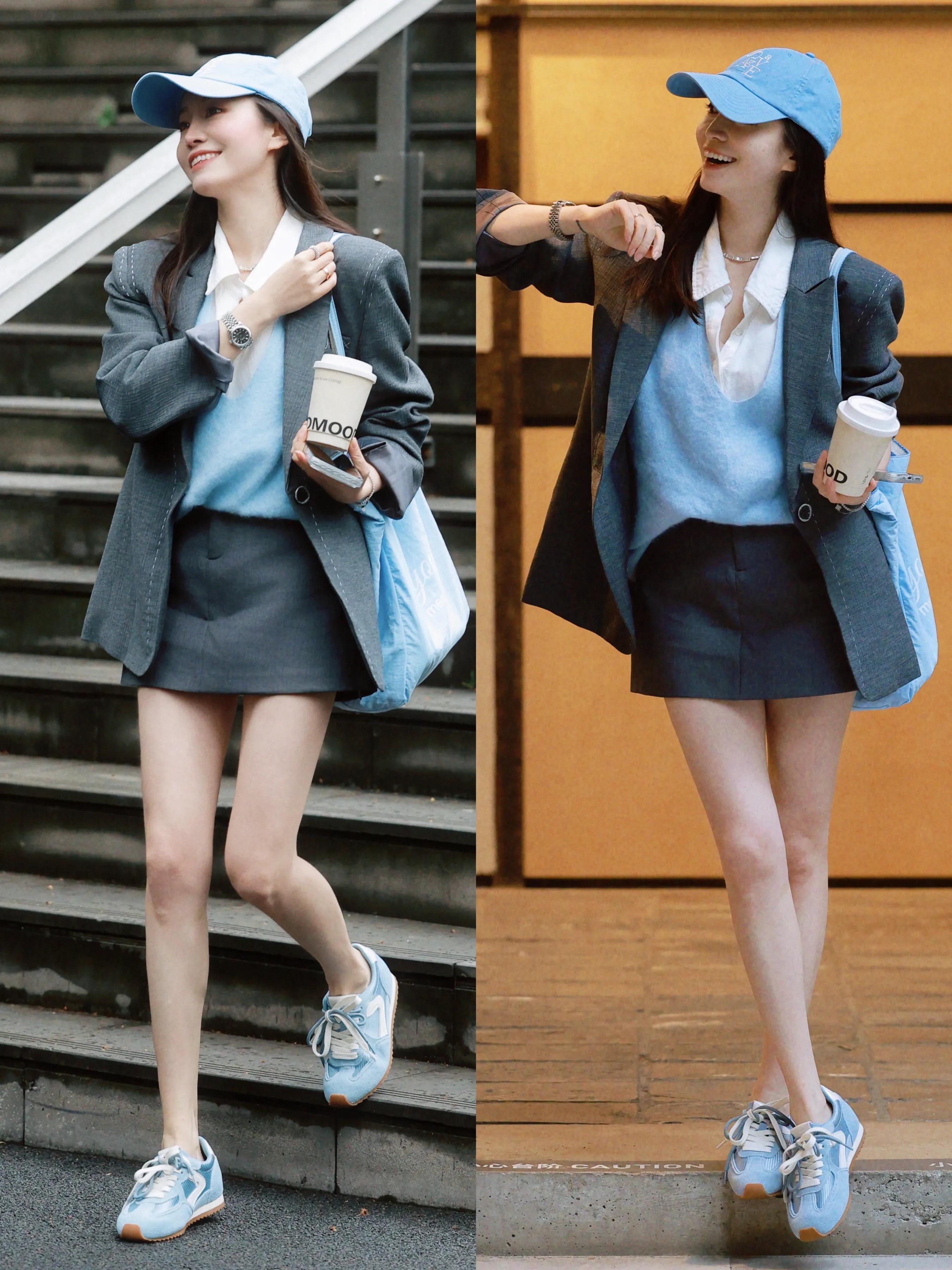 第一章节:如何把裙子穿出俏皮感?Tips①:灰色短裙+西装外套
