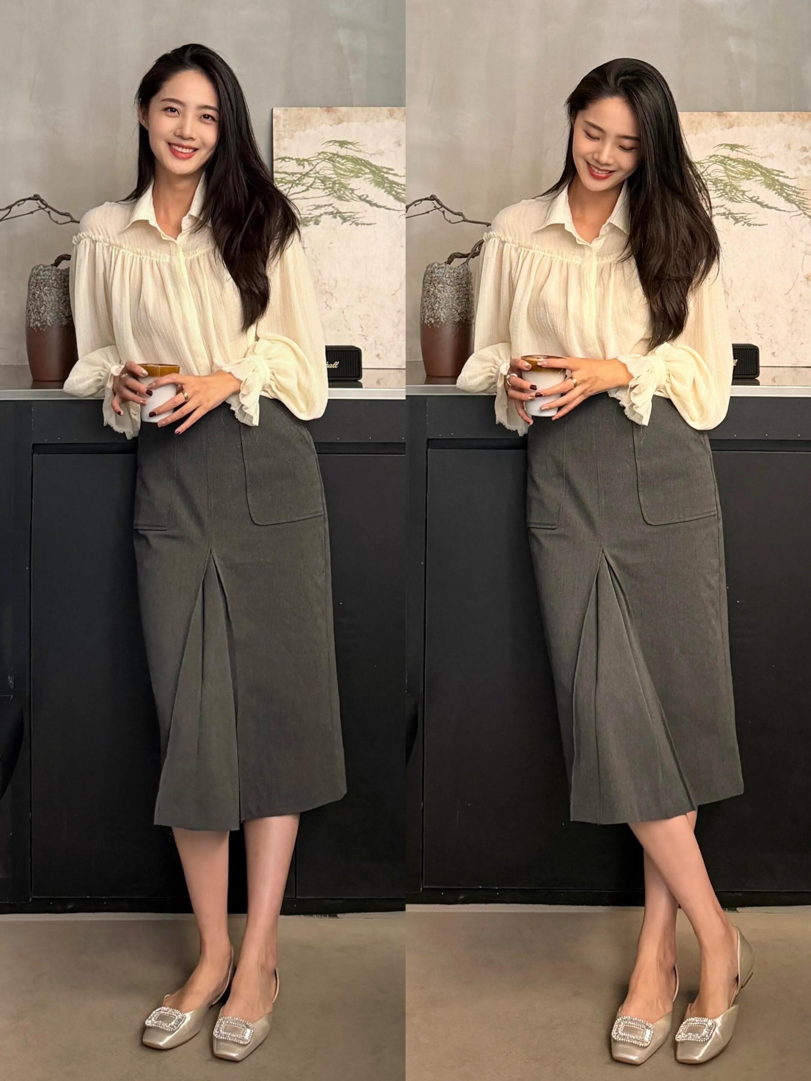 日常穿搭鞋跟尽量不要过高。有的时候其实还不如选择一双平底单鞋或者是低跟单鞋。配上一款灰色的直筒半裙和浅黄色的雪纺衬衫,这样的打扮大大方方反而会更美。