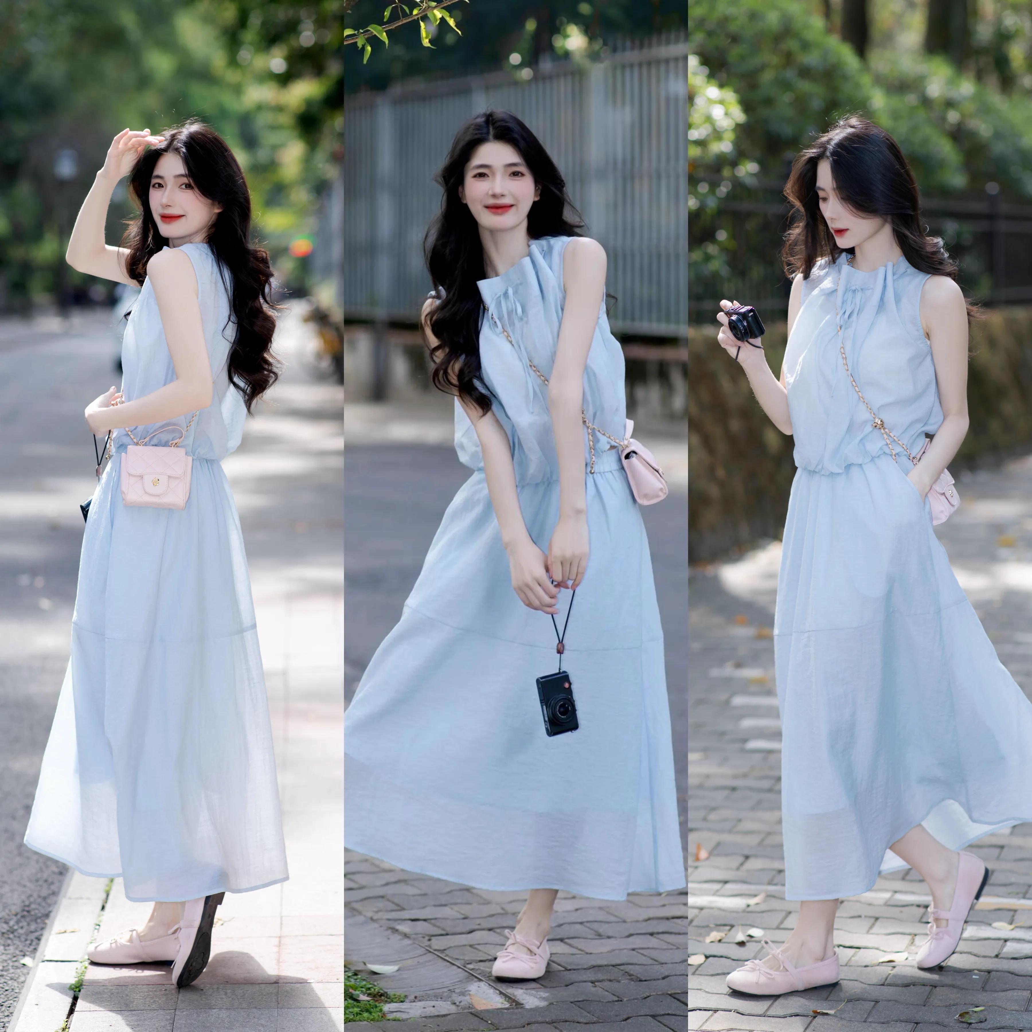 想让自己可盐可甜,不妨可以直接选择小众设计的雾霾蓝衬衫裙装,配上粉色玛丽珍鞋,背着粉色小包和鞋子形成色彩呼应,让整体配色找到一个平衡点。而且这种浅色系穿在身上,能够使得穿搭者的肤色更加显白显嫩。