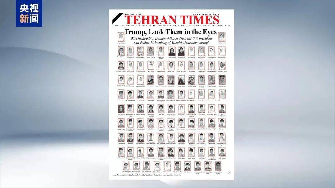伊朗《德黑兰时报》9日在头版刊发了伊朗受害儿童的遗照,并配文:“特朗普,请注视他们的眼睛”。报纸头版上的文字还称,面对上百名伊朗儿童在空袭中丧生,美国总统特朗普至今仍否认轰炸该小学的事实。